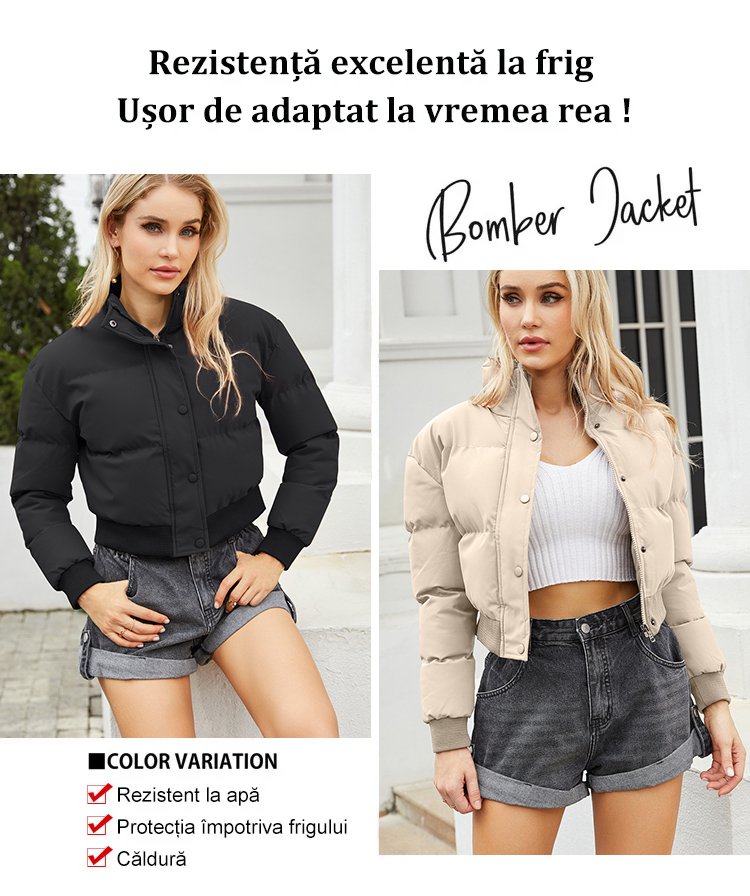 Palton scurt de puf alb de gâscă cu guler înalt